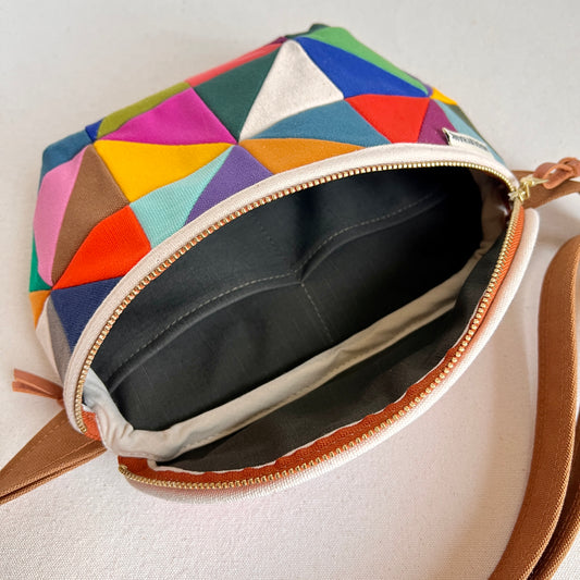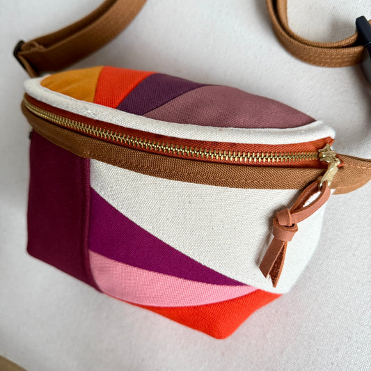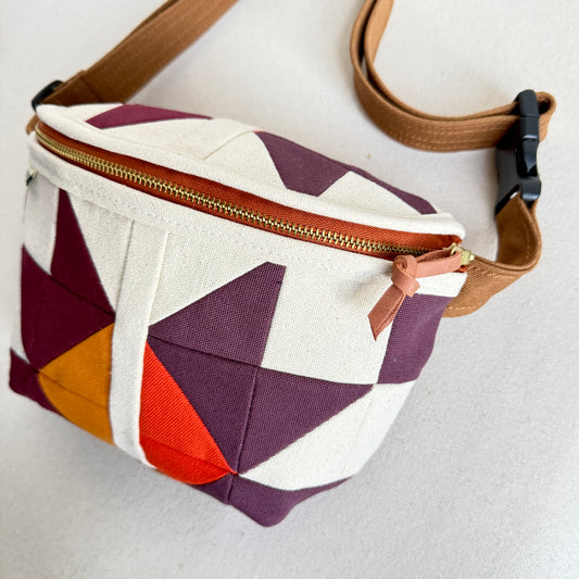 quilt star fanny bag, natural with wine/raisin/plum/tangerine