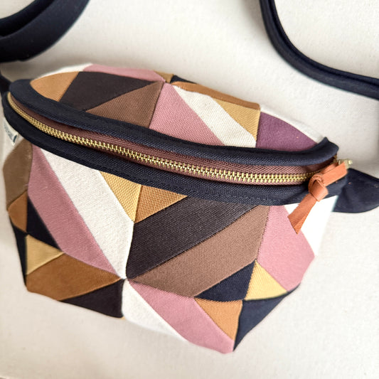 pinwheel star fanny bag, natural with mauve/black/forest/steel/honey/pink