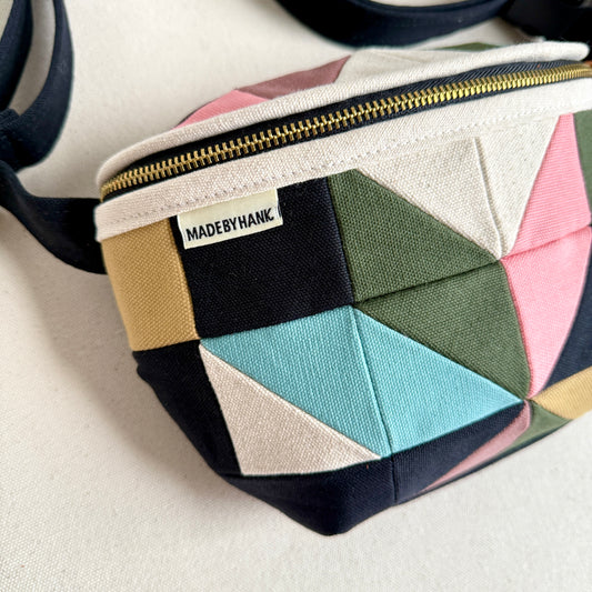 quilt star fanny bag, forest/mint/caramel/mauve/natural
